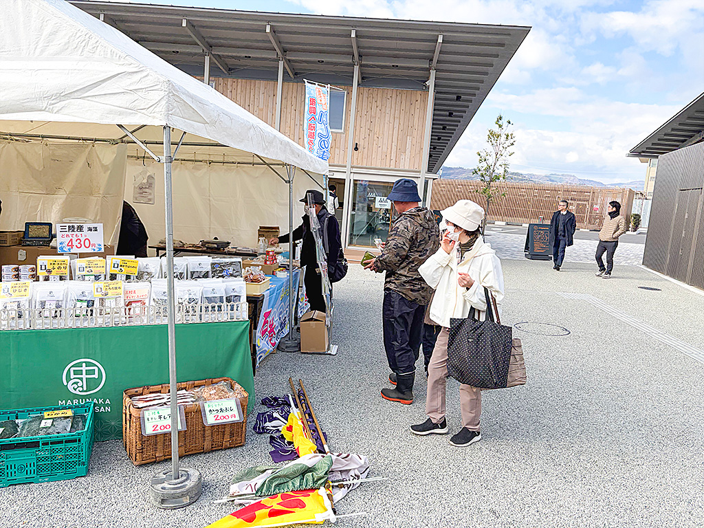 これに伴い、一般社団法人石巻圏観光推進機構(石巻圏DMO)と連携し、宮城県女川町、石巻市、東松島市の農産品、海産物、加工品などの販売を行うことで施設への集客を図るため「三陸うまいもの市」というマルシェイベントを開催いたしました。イベントを開催することで地域住民同士の交流のきっかけを創出し、大熊町内のみならず、周辺地域から施設への誘客も図り、地域活性化を進めていきます。