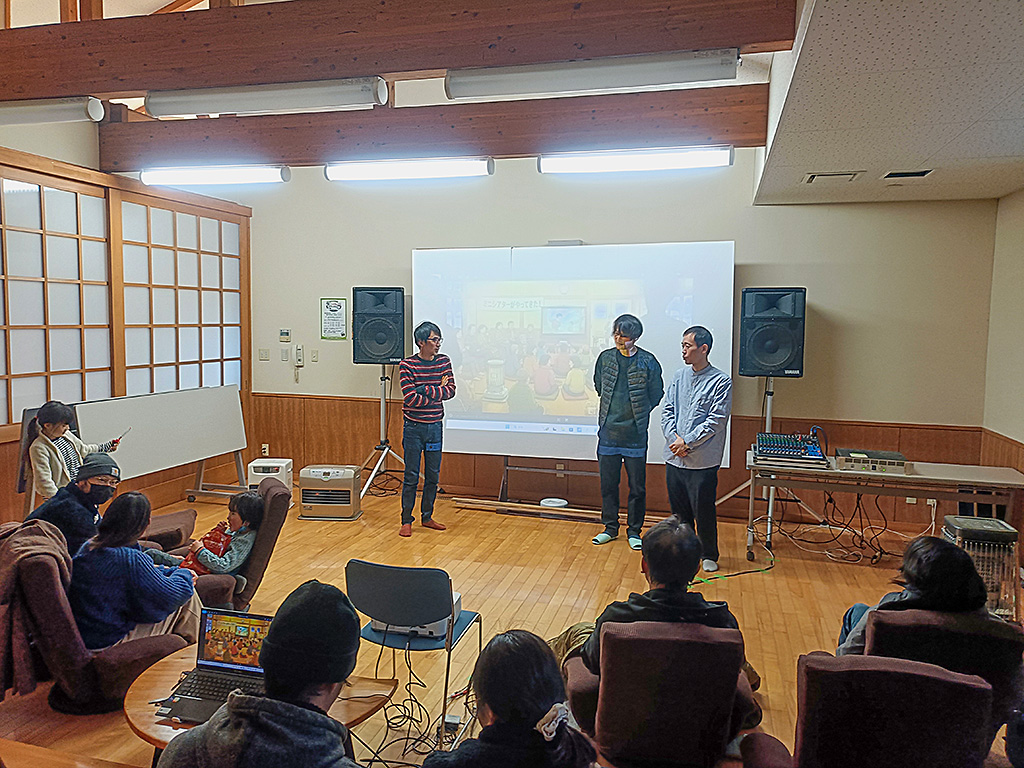 12月27日~29日の3日間で「ミニシアターがやってきた」と題して映画上映会をいわなの郷で開催し、30分程度の短編映画から100分程の長編映画まで、計17本のさまざまな映画の上映会を行いました。当日は、村内外から多くの参加者にご参加いただき、住民同士の交流機会の創出、地域の映画に対する機運も高まったものと思います。 また、交流プログラムとして、映画監督やプロデューサーなどの映画関係者との参加者交流会も実施し、川内村の情景や風土など、この地域ならではの魅力などにも触れつつ、地域住民との深い交流機会を創出することができました。
